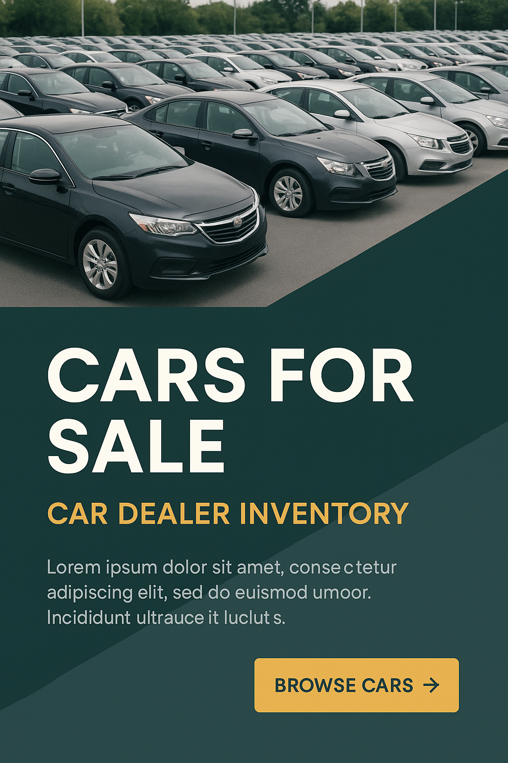/Collection: /by davooda/Type: PNG/A visually appealing car dealership inventory display featuring a diverse range of cars for sale. The design includes clear text hierarchy and engaging action buttons.