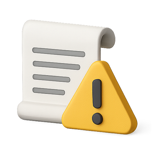 /Collection: /by davooda/Type: PNG/A 3D graphic featuring a document and a warning symbol, designed for use in notifications or alerts. The modern style combines a scroll-like document with a prominent yellow warning triangle, suitable for digital applications.