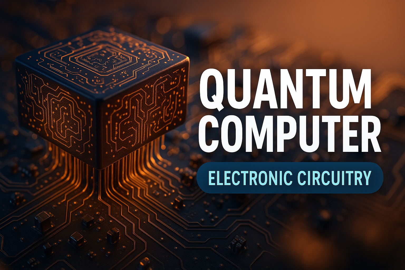 3D Rendering of Quantum Computer Circuitry with Text Overlay