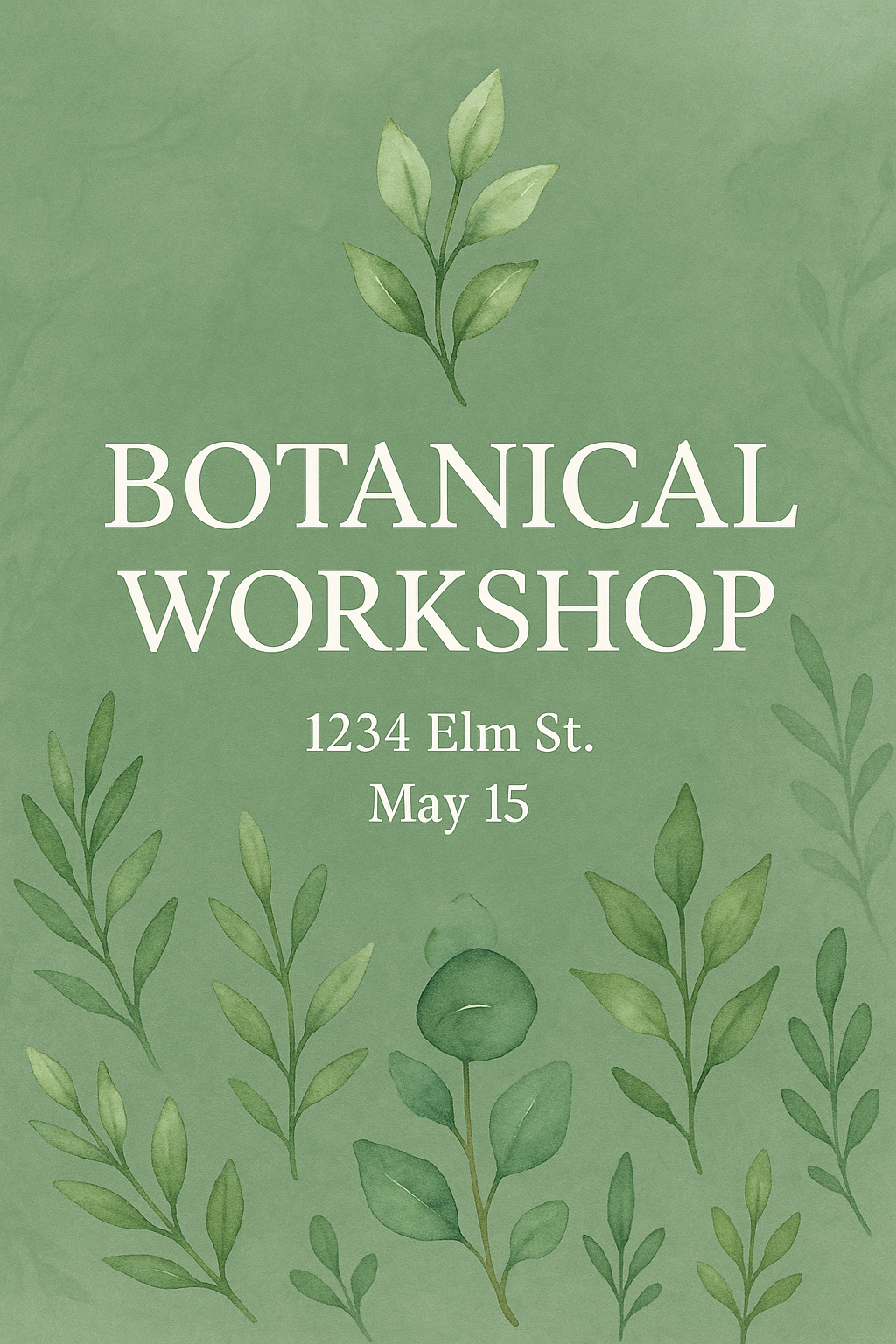 Botanical Workshop Promotional Poster with Elegant Watercolor Design