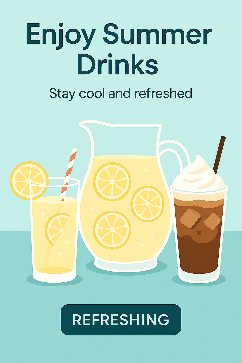 Charming Illustration of Refreshing Cold Beverages for Summer