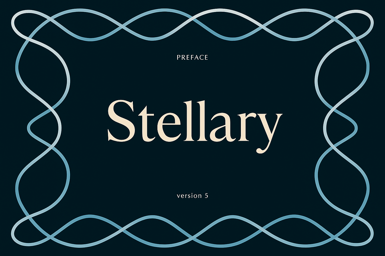 This image features a sophisticated geometric pattern combined with modern typography. The text 'Stellary' is prominently displayed, surrounded by elegant curves against a dark background.
