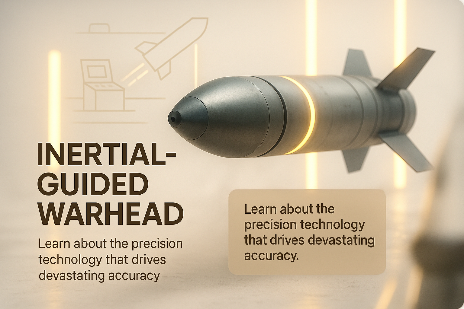 /Collection: /by davooda/Type: PNG/A visually appealing graphic featuring a 3D representation of an inertial-guided warhead, designed to educate viewers on advanced military technology. The modern aesthetic and sleek design elements cater to a tech-savvy audience.
