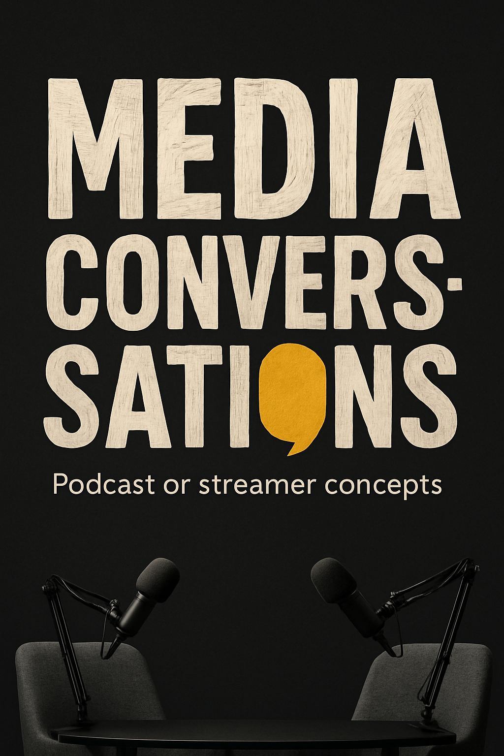 Stylish graphic designed for podcasts or streaming concepts, featuring bold typography and a minimalistic background. Ideal for promotional materials or social media.