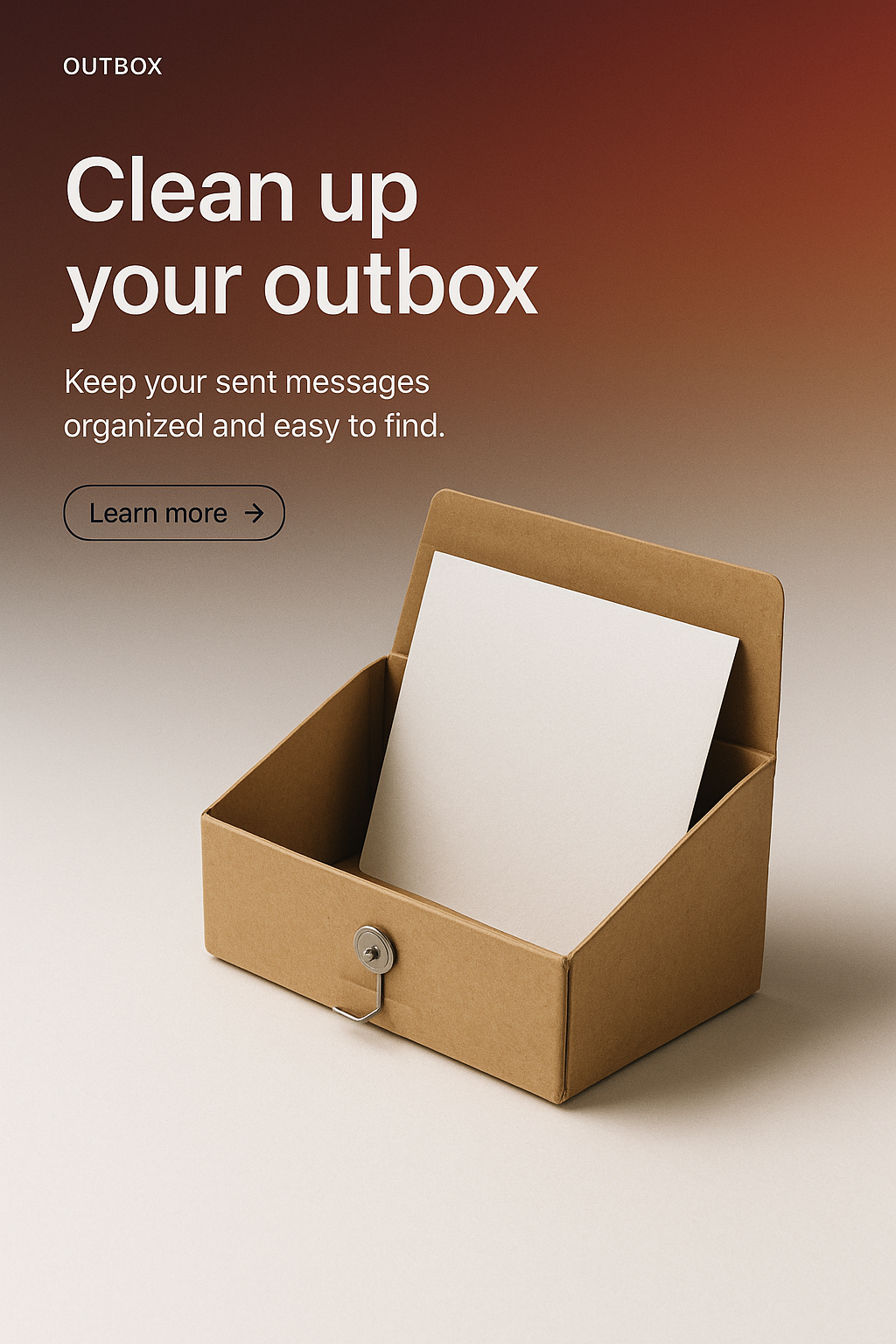 /Collection: /by davooda/Type: PNG/A minimalist web page design showcases a cardboard outbox with a clean layout. It features a simple gradient background, a catchy headline, and a call-to-action button.