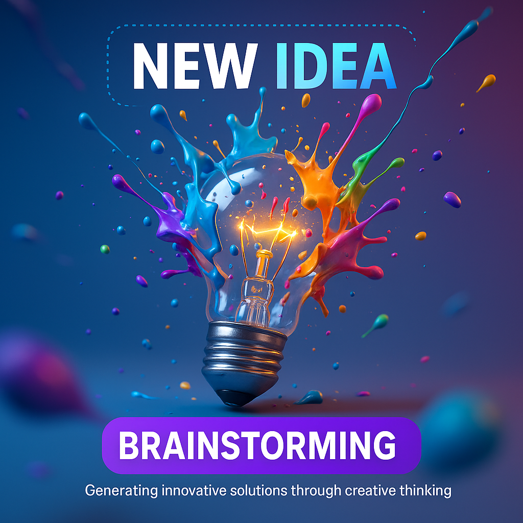 /Collection: /by davooda/Type: PNG/This vibrant graphic represents the theme of brainstorming and creativity, featuring a light bulb surrounded by colorful paint splashes. Ideal for presentations or social media posts focused on innovation.