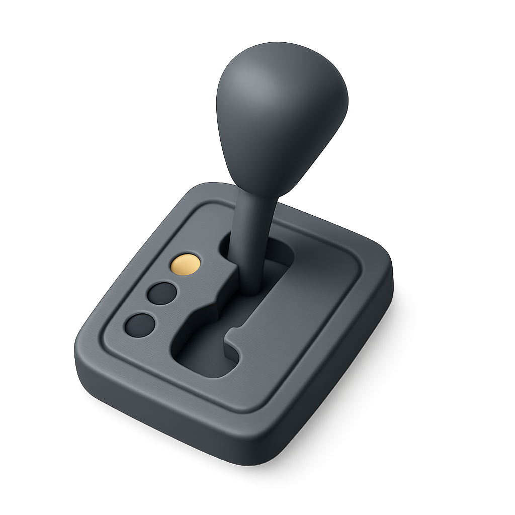 /Collection: /by davooda/Type: PNG/A sleek 3D isometric representation of a gear shift lever, positioned in a three-quarter view. The design features a smooth, modern aesthetic with a transparent background.