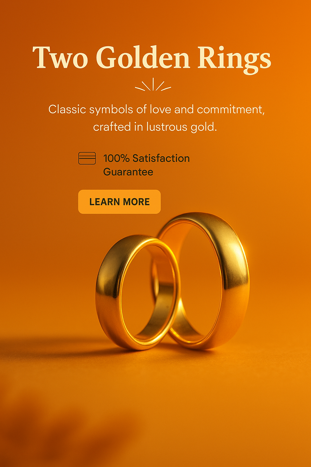 /Collection: /by davooda/Type: PNG/This image features two golden rings against a warm orange background, emphasizing themes of love and commitment. Ideal for jewelry promotions or wedding-related marketing.