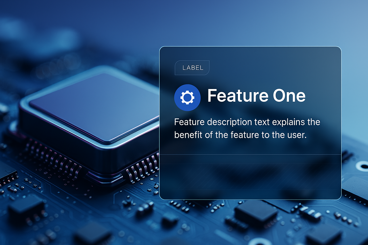 /Collection: /by davooda/Type: PNG/A detailed macro shot of a microchip on a circuit board, featuring a label and description box highlighting a specific feature. The background is a smooth gradient, enhancing the tech aesthetic.