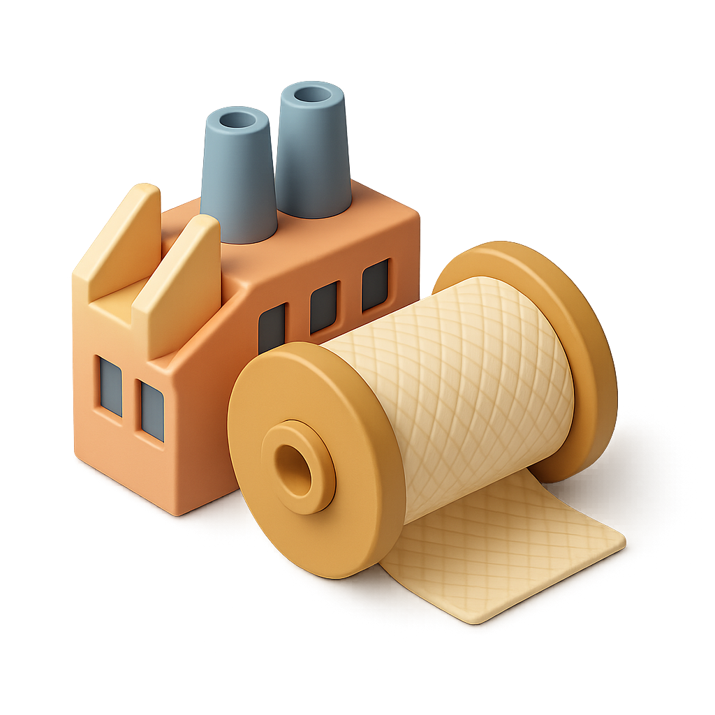 Stylized 3D Textile Mill Icon for Production Visuals