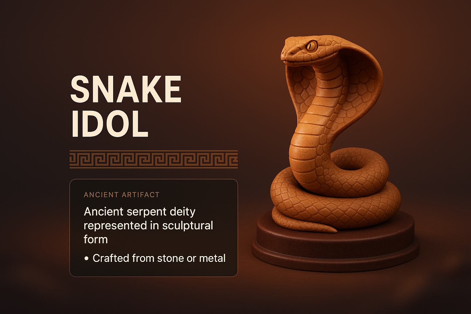 /Collection: /by davooda/Type: PNG/A striking 3D sculpture of a snake idol, crafted from stone or metal, featuring a smooth gradient background and integrated design elements for a captivating visual.