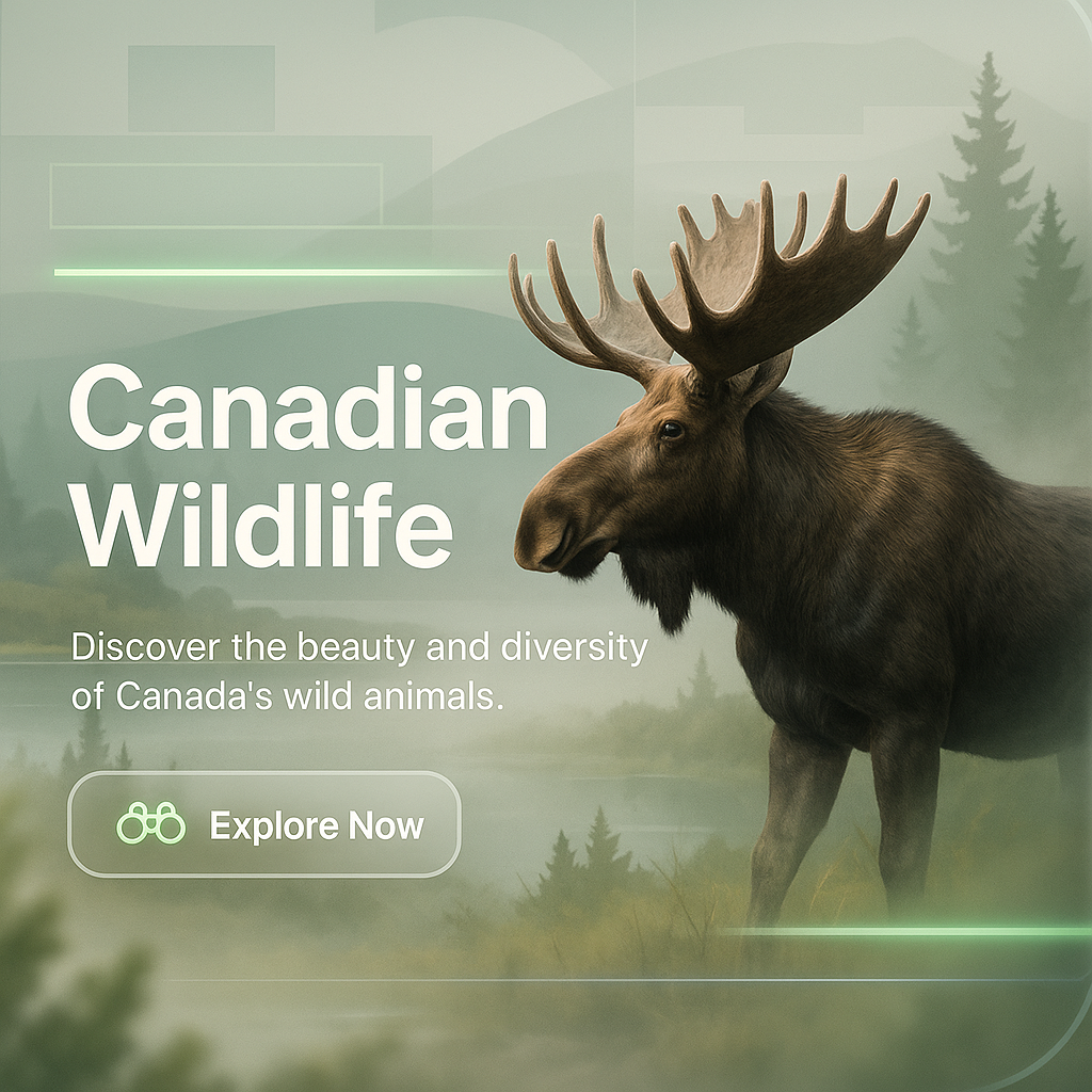 Engaging promotional graphic featuring a moose, highlighting the beauty and diversity of Canadian wildlife. Ideal for nature tourism campaigns.