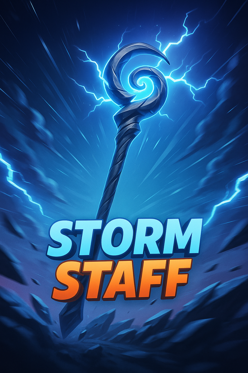 /Collection: /by davooda/Type: PNG/A visually striking illustration of a storm staff, surrounded by dynamic lightning effects and swirling clouds. The title 'STORM STAFF' is prominently displayed in bold colors, enhancing the dramatic atmosphere.