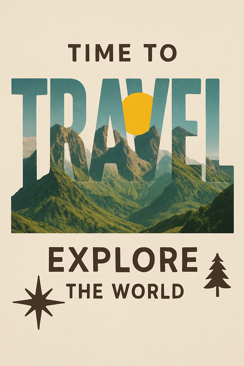 Travel-themed Poster Featuring Scenic Landscape and Bold Typography
