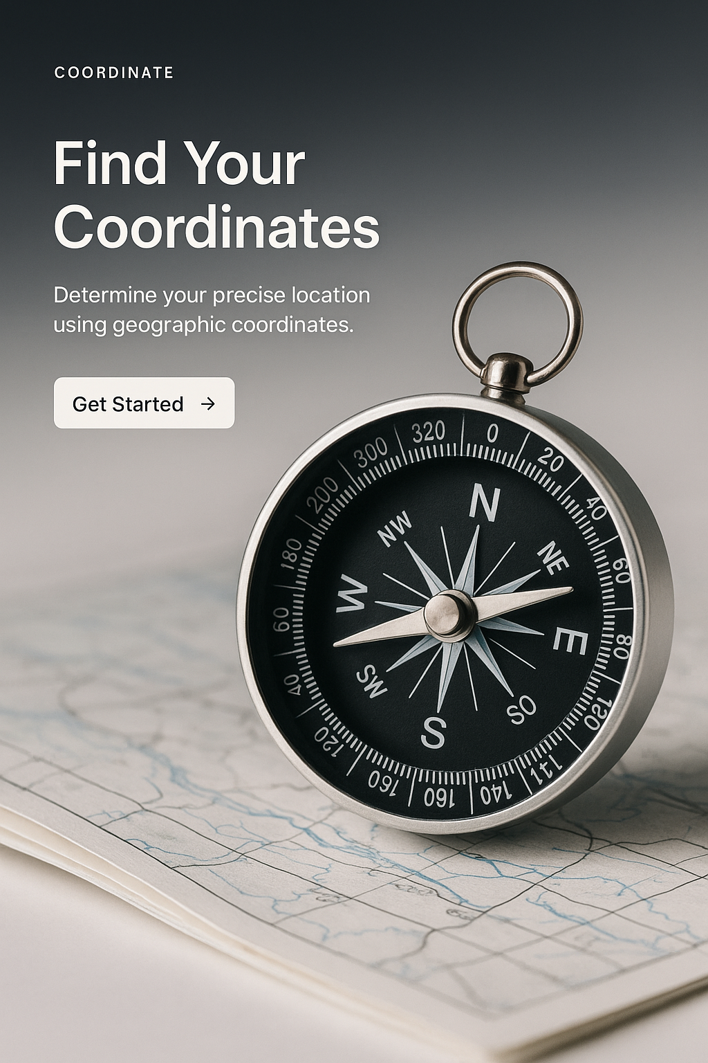 A modern web page design showcasing a compass on a map background. Features a clear call-to-action button and readable text layout, emphasizing usability.