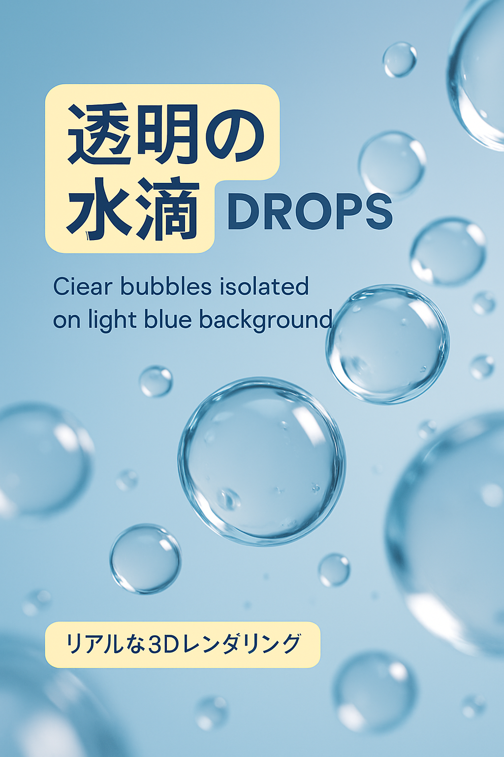 Realistic Water Drops and Clear Bubbles on Light Blue Background