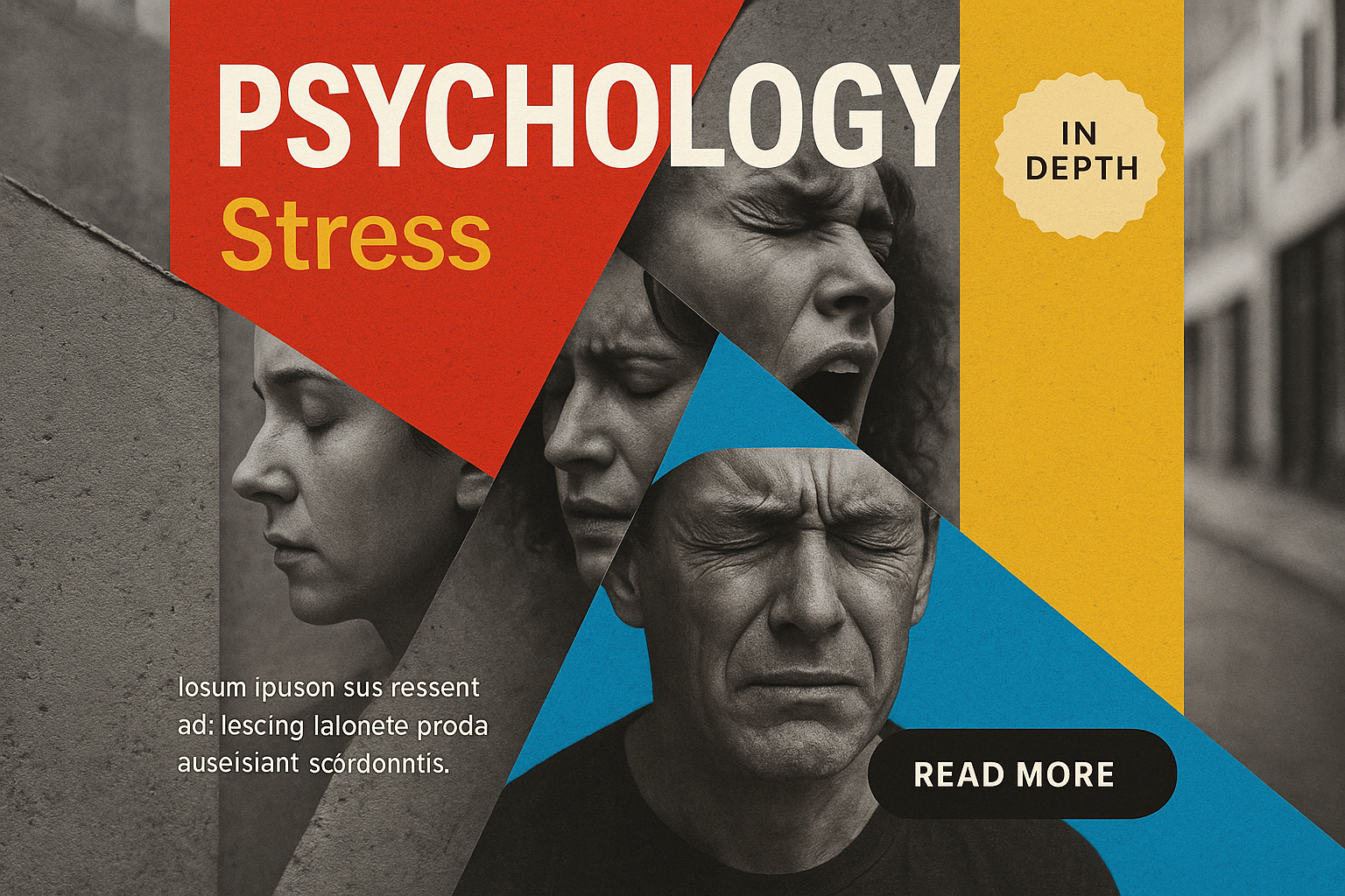 Abstract Collage of Faces and Colors Reflecting Stress in Psychology
