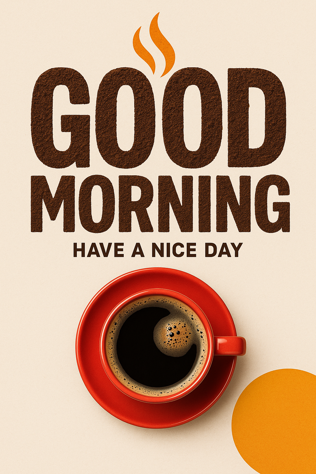 Charming graphic featuring a coffee cup with a friendly morning greeting, perfect for social media or lifestyle blogs. The warm colors and simple design convey a positive start to the day.