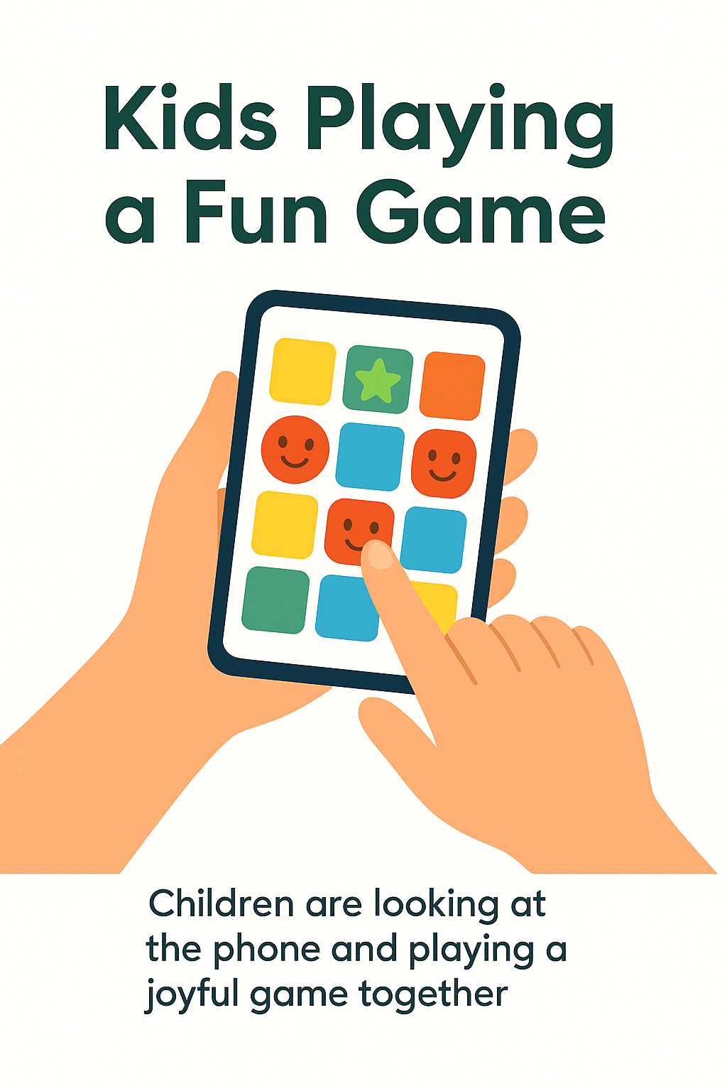 A vibrant illustration depicting children interacting with a mobile device, showcasing a playful atmosphere. Ideal for educational or entertainment contexts aimed at children and parents.
