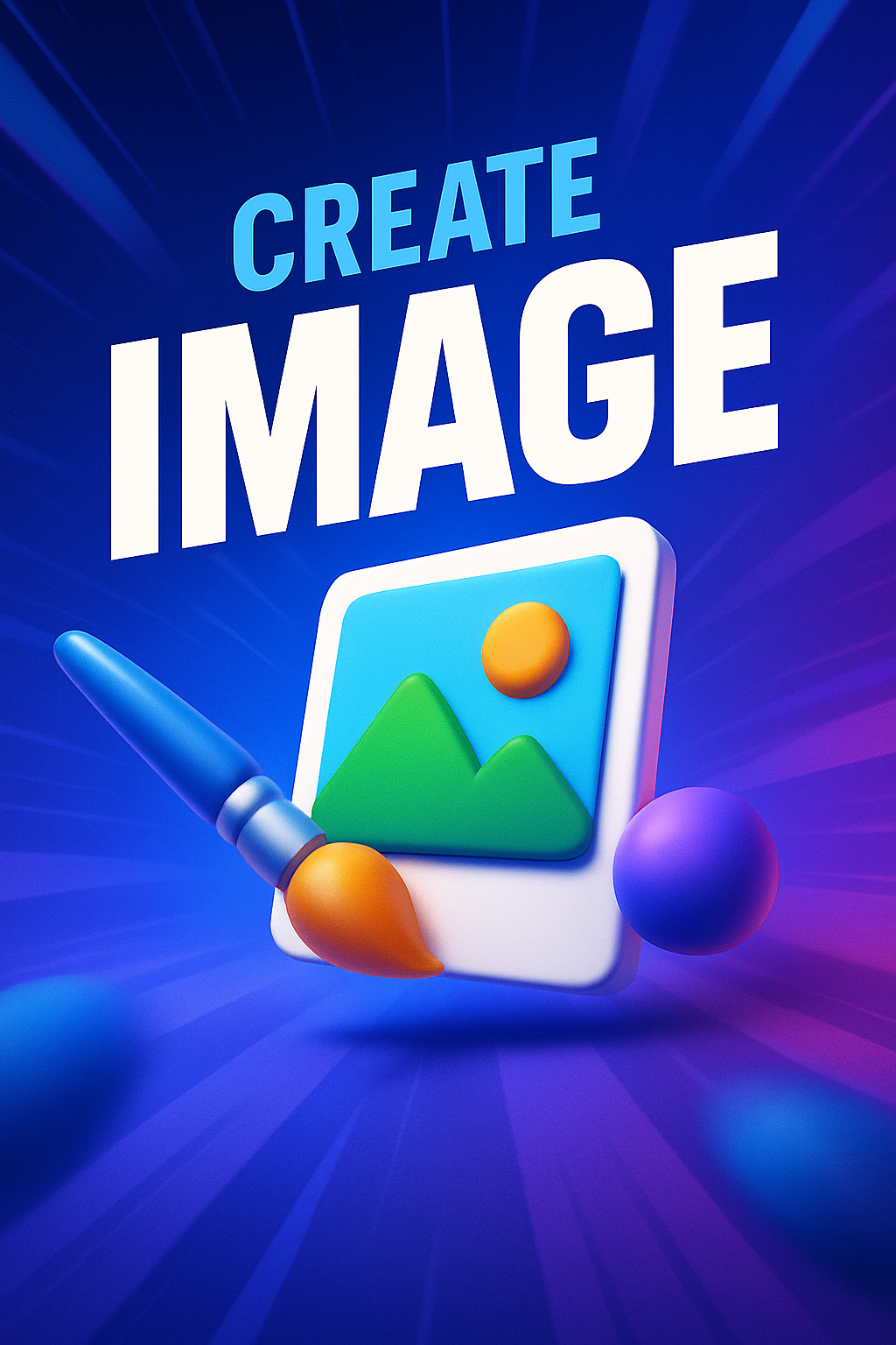 /Collection: /by davooda/Type: PNG/This vibrant 3D illustration features a creative scene with a paintbrush and an image icon, set against a dynamic gradient background. The design emphasizes energy and creativity.