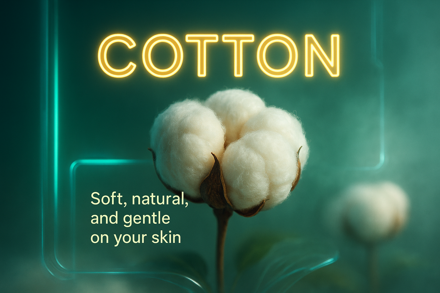 A visually striking advertisement featuring cotton with neon accents. The soft, natural fibers are highlighted by glowing edges, creating a gentle and inviting atmosphere.