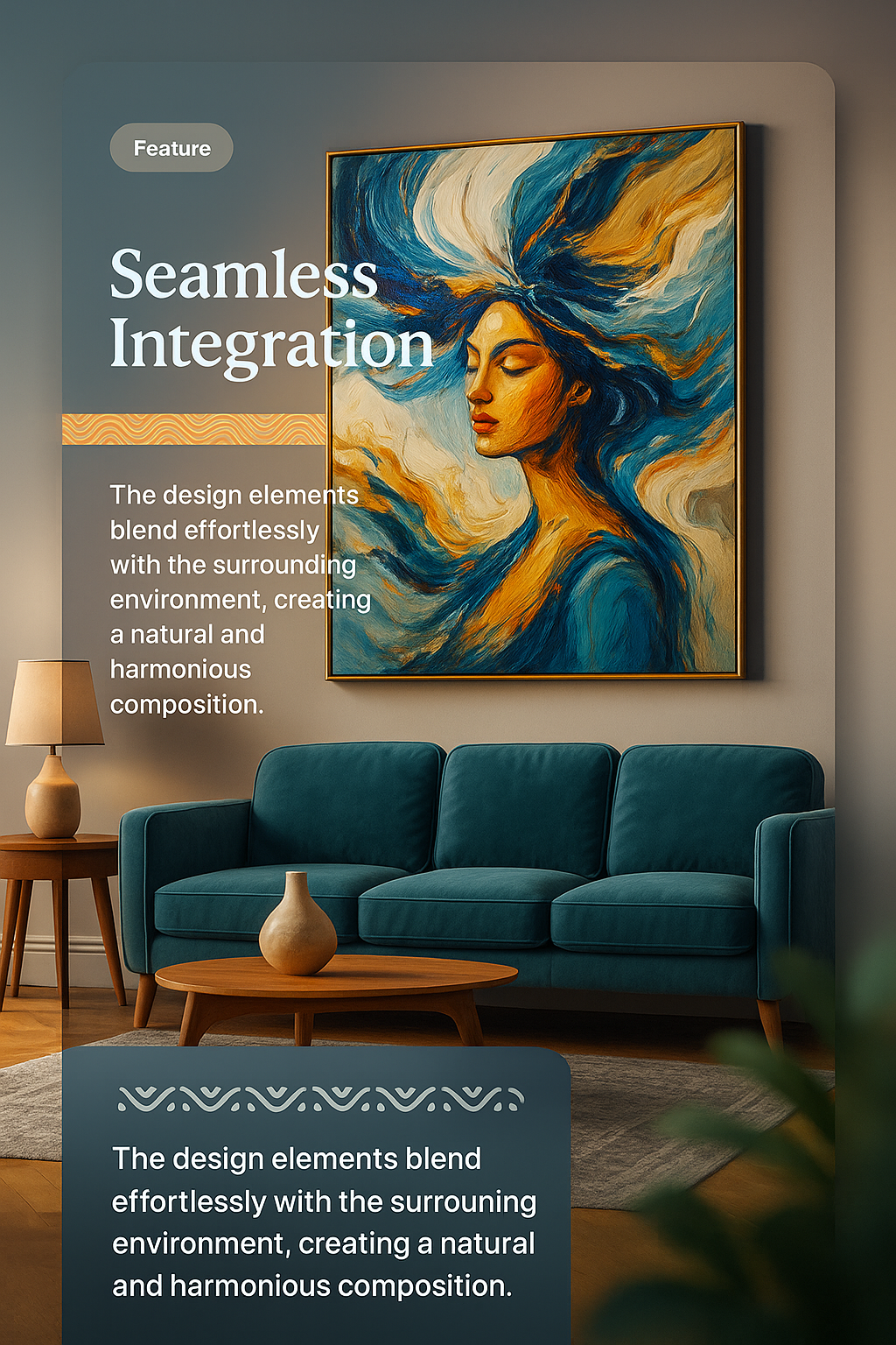 /Collection: /by davooda/Type: PNG/A beautifully designed living room featuring an artistic painting. The space is harmoniously integrated with modern furniture and elegant design elements, creating a stylish ambiance.