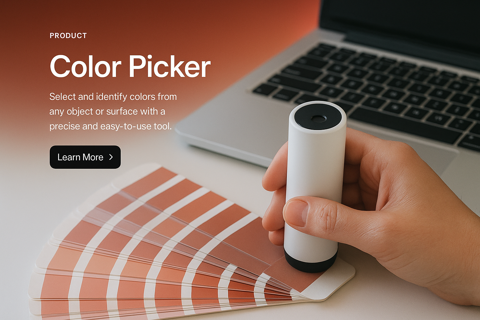 /Collection: /by davooda/Type: PNG/A sleek color picker tool held in a hand, with color swatches in the foreground. The background features a gradient from dark to white, enhancing the tool's visibility.
