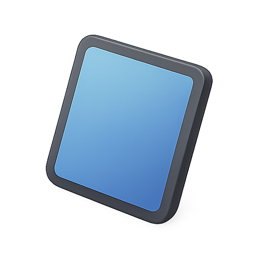 Stylized square button icon with a smooth gradient blue surface and rounded edges, ideal for user interface design and app development.