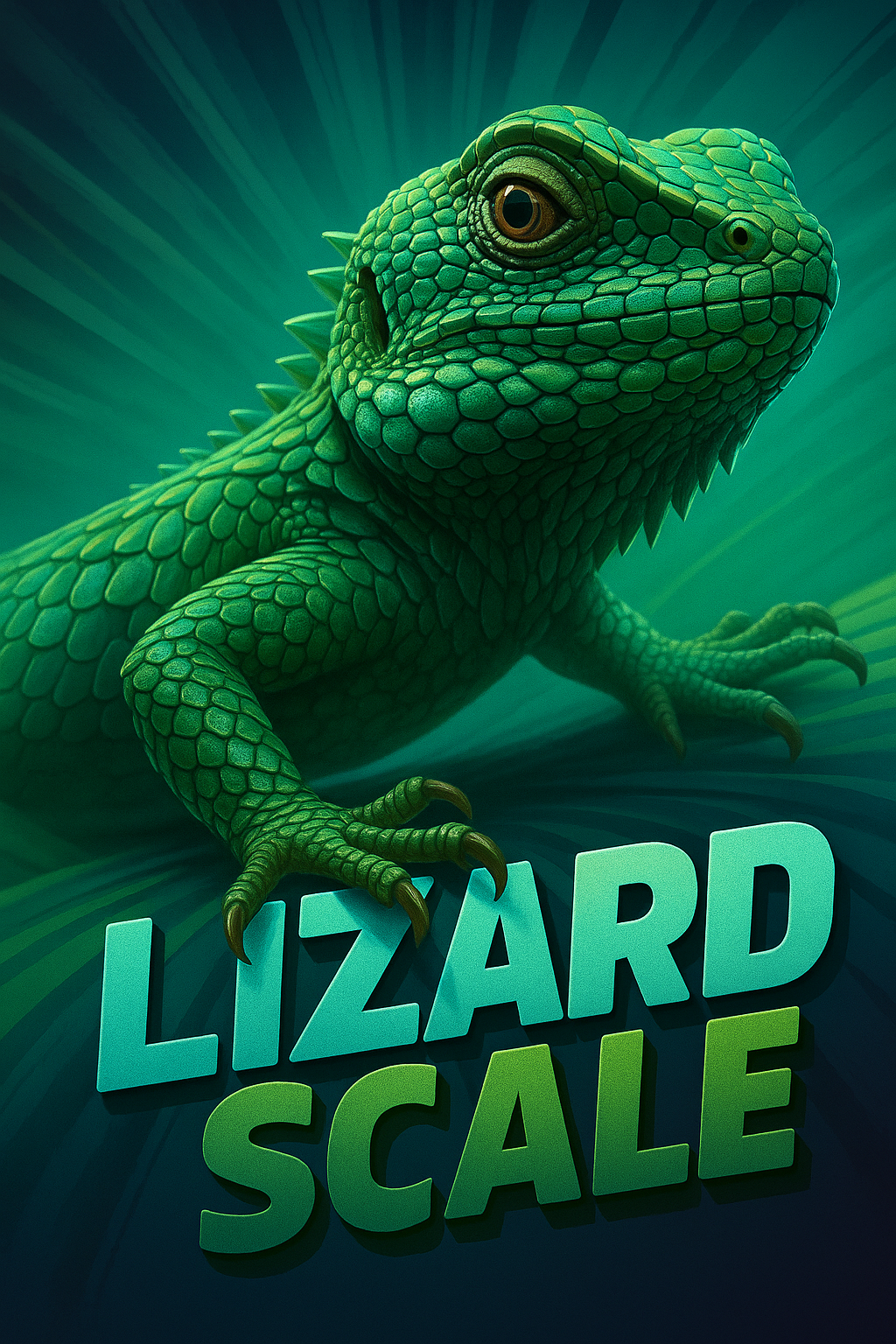 /Collection: /by davooda/Type: PNG/A vibrant 3D illustration of a lizard emphasizing its textured scales. The dynamic background features rays radiating from the center, enhancing the visual depth and realism.