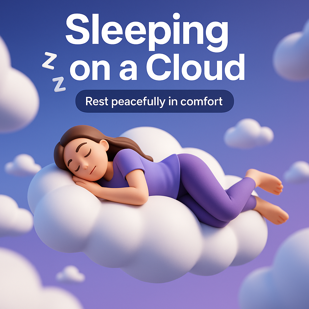 /Collection: /by davooda/Type: PNG/A whimsical digital illustration showcasing a character peacefully sleeping on a fluffy cloud. The vibrant colors and soft design evoke a sense of comfort and tranquility, ideal for wellness or sleep-related content.