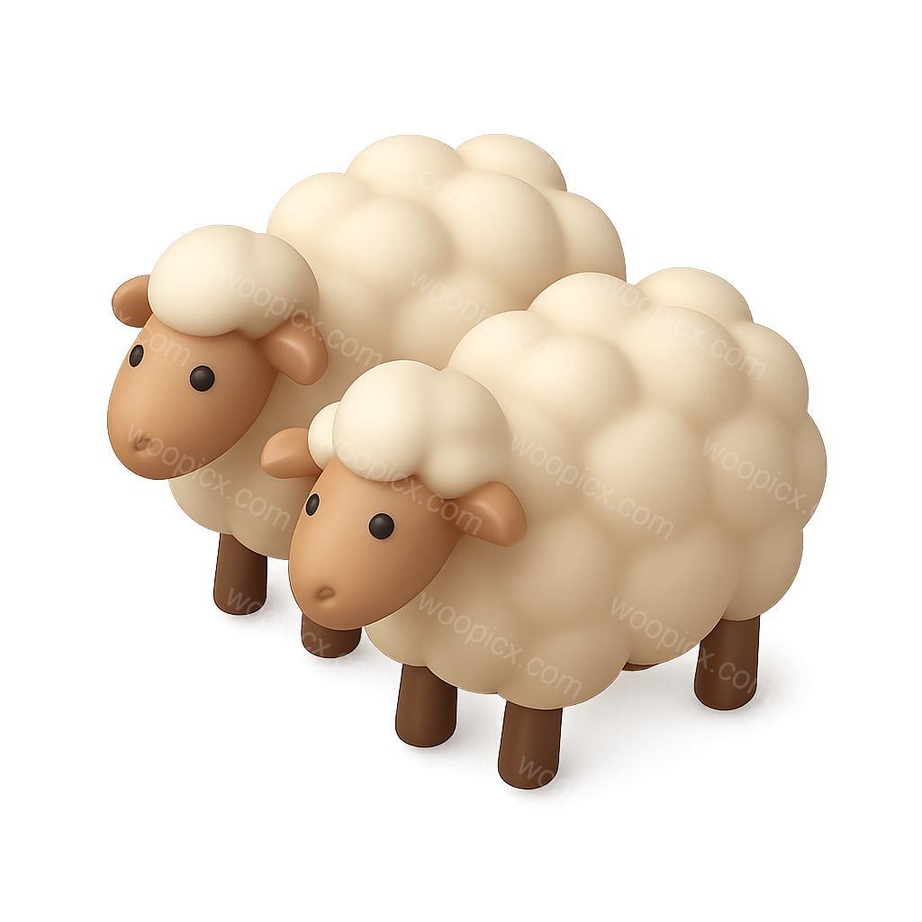 This image features two adorable 3D sheep icons with a fluffy wool texture and a soft color palette. The isometric view enhances their volumetric appearance, set against a subtle gradient background.