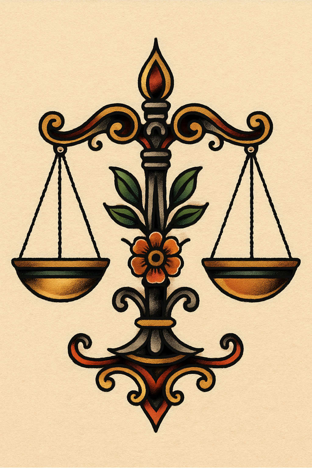 /Collection: /by davooda/Type: PNG/This image features a beautifully designed balance scale with floral motifs, showcasing an artistic style suitable for law-related themes or decorative purposes.
