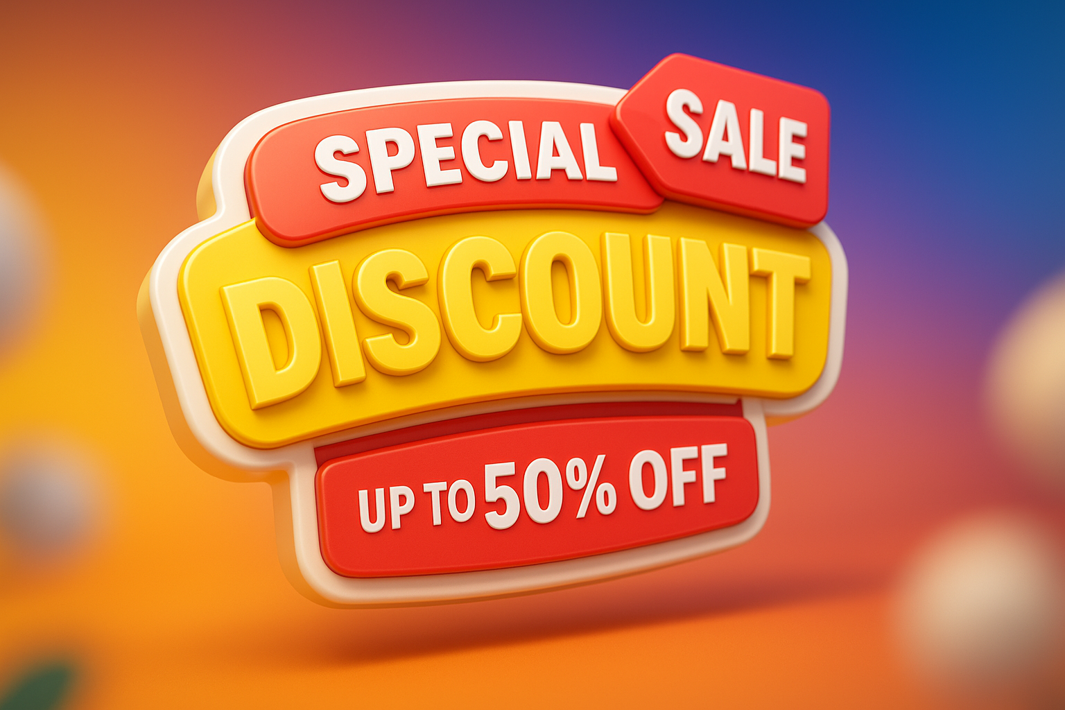 A colorful and eye-catching promotional graphic highlighting a special sale with a focus on discounts. Ideal for e-commerce marketing and advertising.