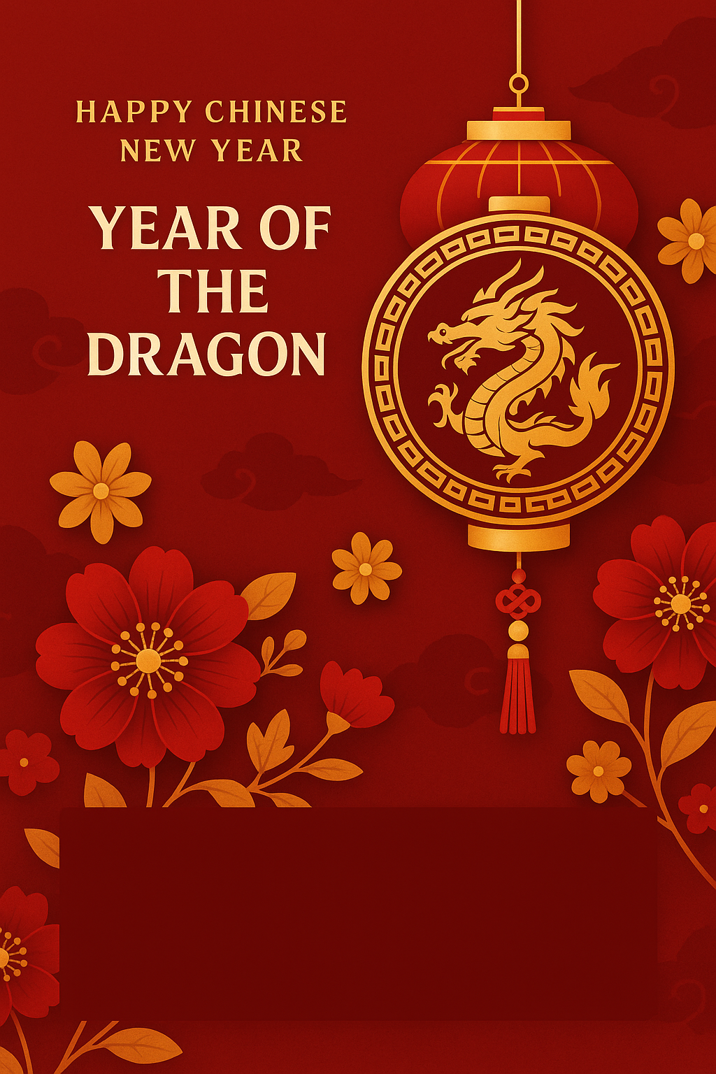 Vibrant Chinese New Year greeting card featuring a decorative dragon lantern and floral elements, ideal for celebrating the Year of the Dragon.