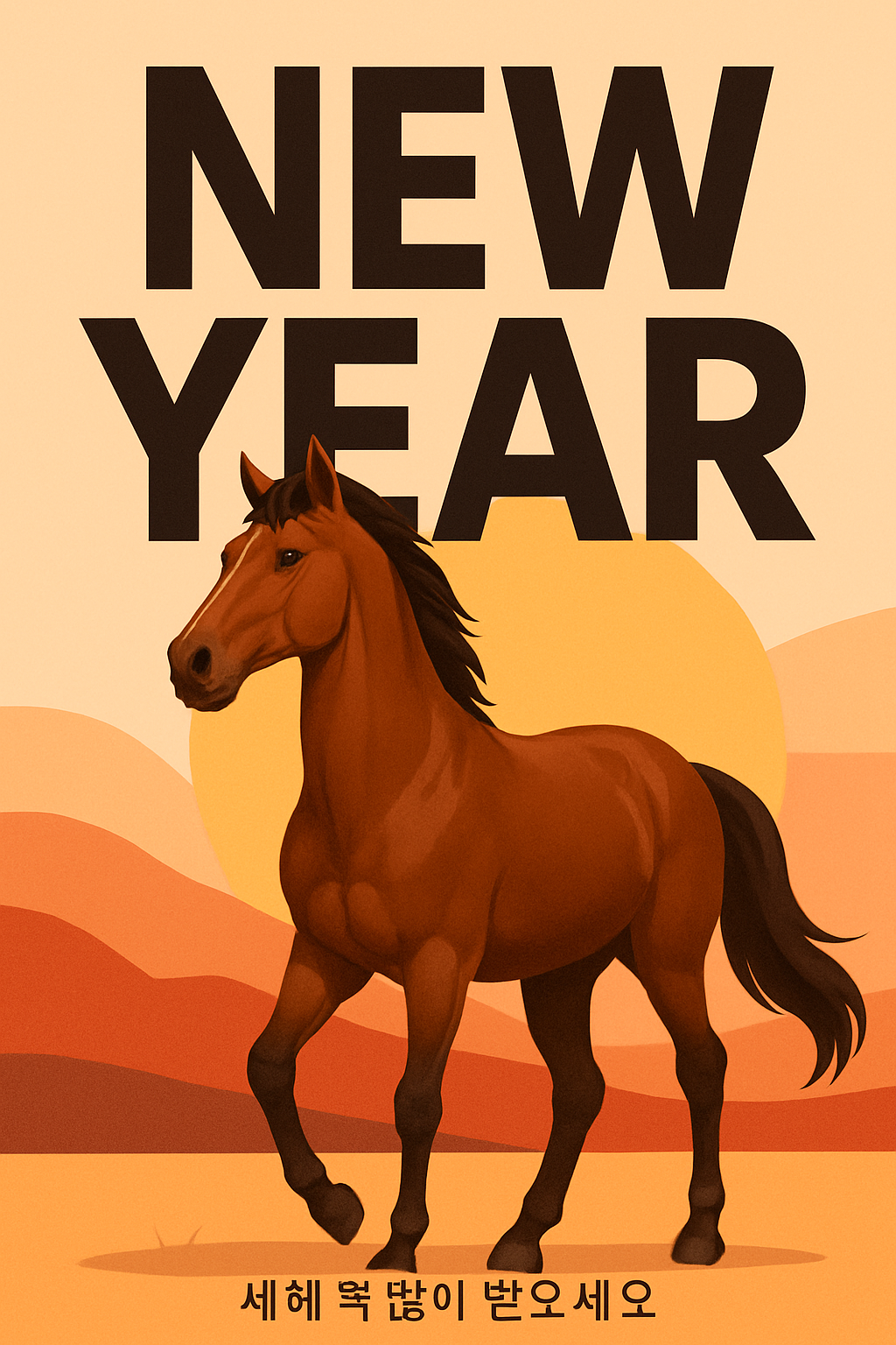 Stylish Lunar New Year Sunrise Illustration Featuring a Horse