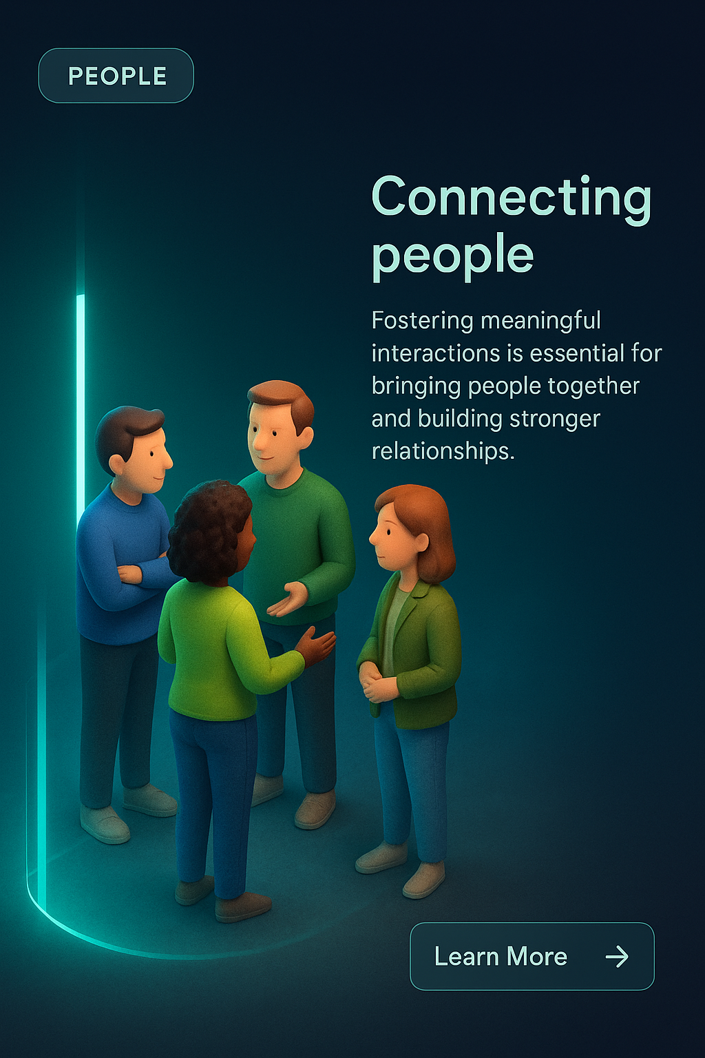 /Collection: /by davooda/Type: PNG/A vibrant 3D scene featuring a small group of people engaged in conversation against a dark gradient background. Neon accents illuminate the surroundings, enhancing the ambiance.