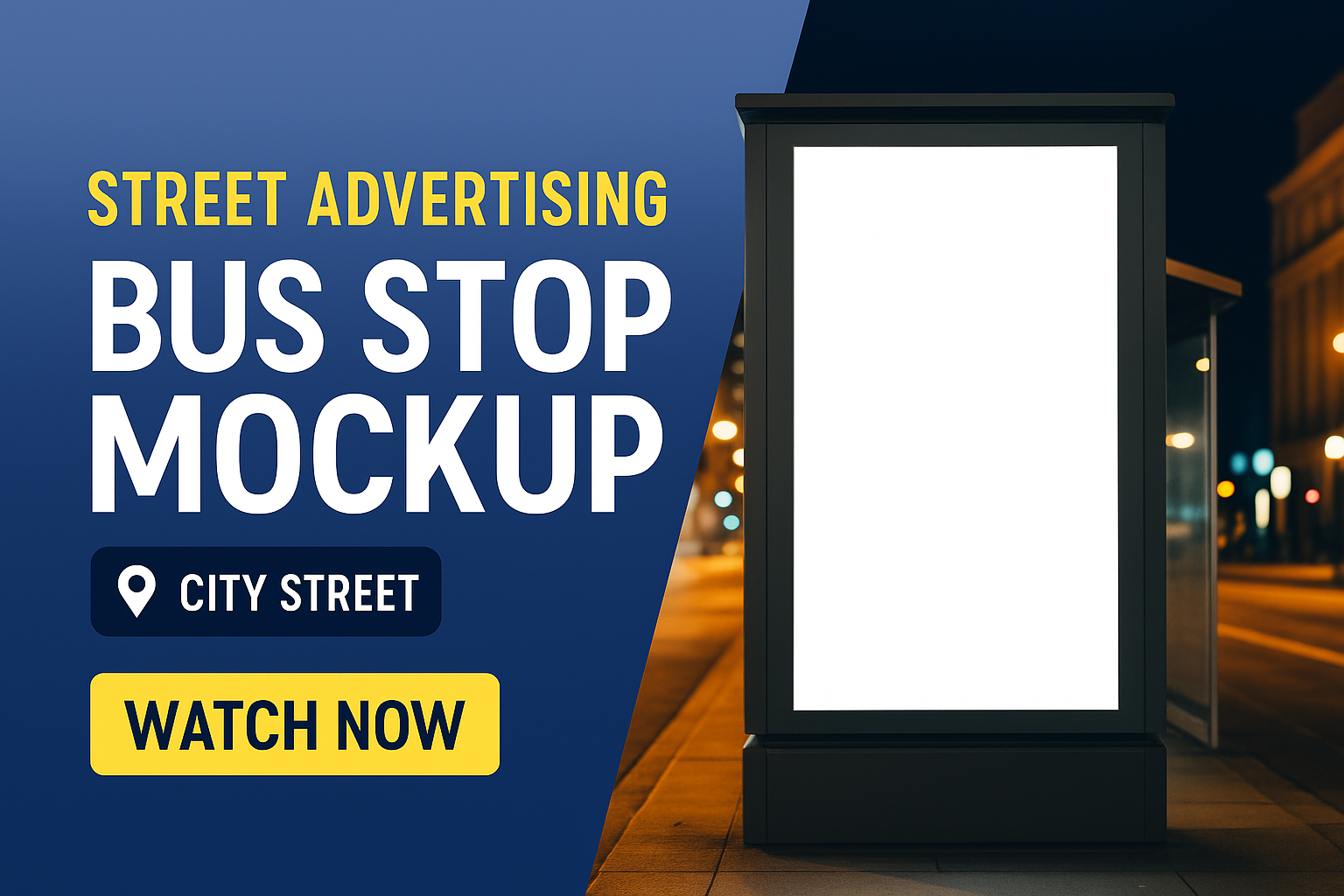 Nighttime Billboard Bus Stop Mockup for Street Advertising