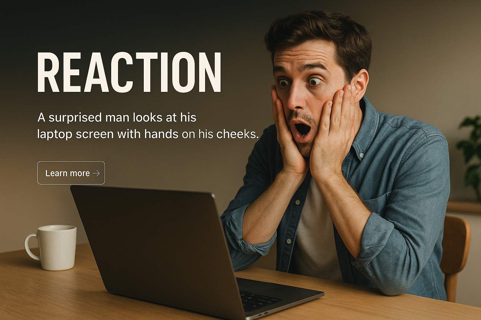 Surprised Man Reacting to Laptop Screen in Modern Web Design