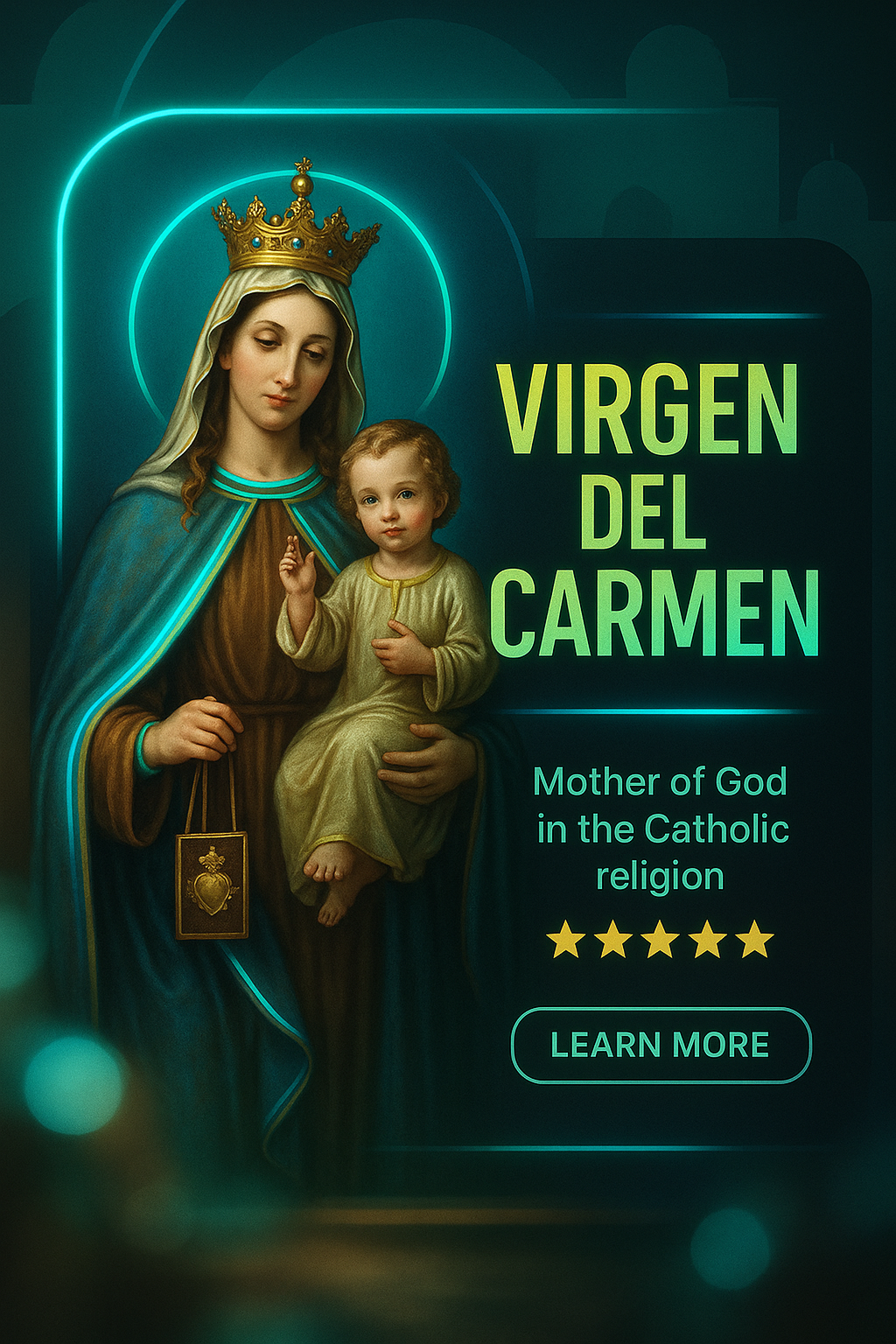 Religious Illustration of Virgen del Carmen with Modern Design Elements