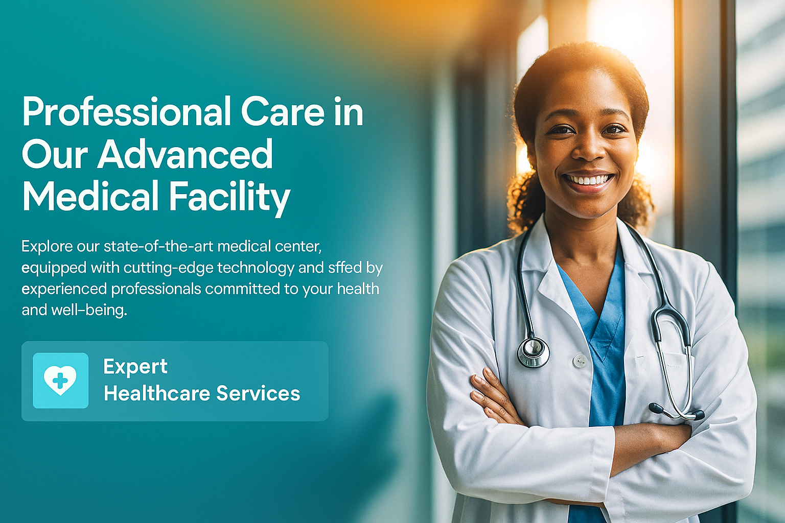 /Collection: /by davooda/Type: PNG/A confident Black woman doctor stands with arms crossed in a bright medical clinic. The scene captures her professionalism and warmth, enhanced by soft lighting and a dynamic composition.