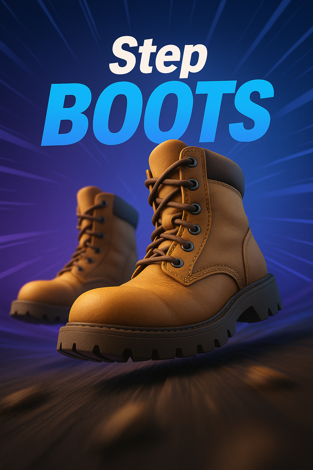 /Collection: /by davooda/Type: PNG/A vibrant 3D illustration of boots set against a dynamic gradient background. The boots are positioned prominently with motion lines radiating outward, enhancing the sense of movement.