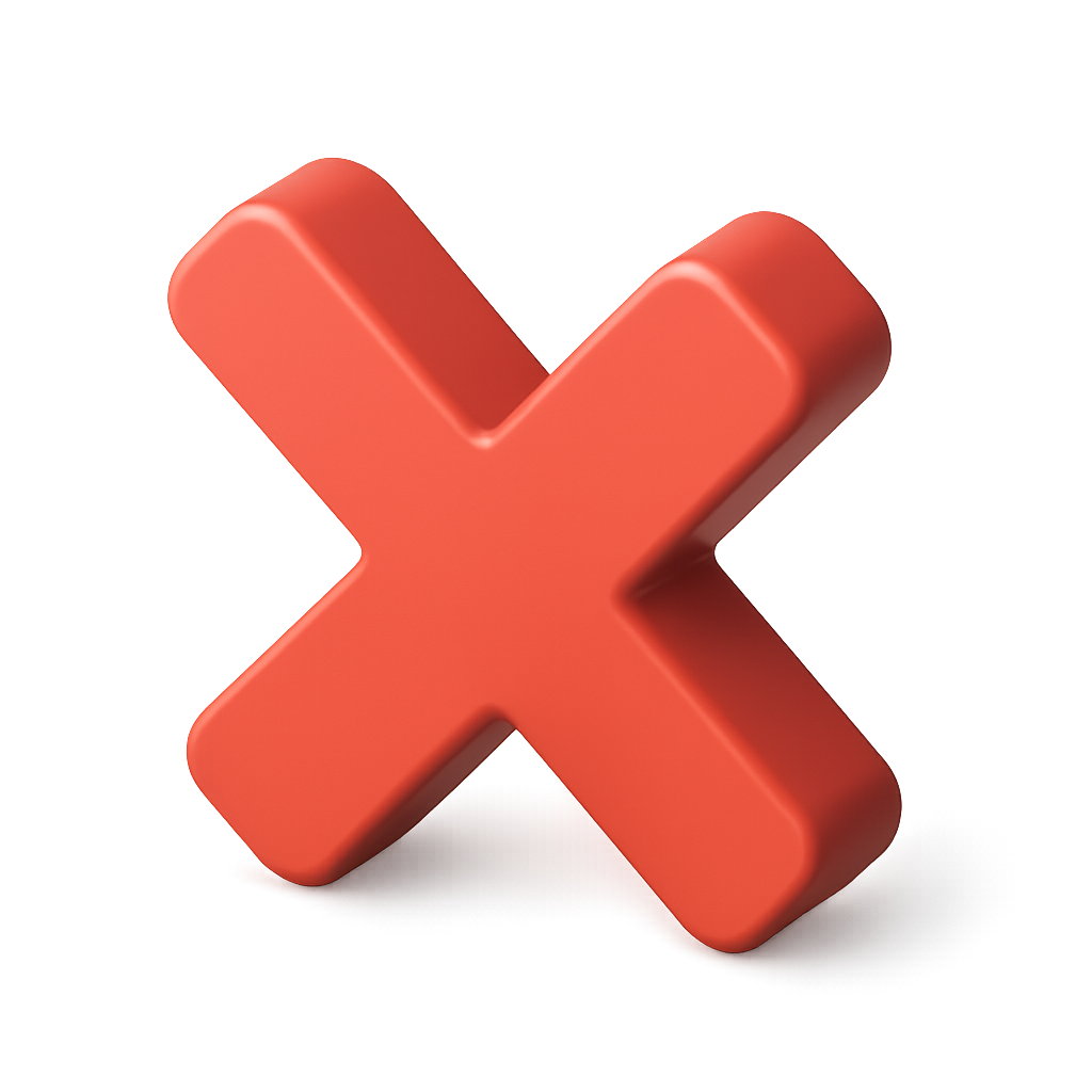 A vibrant red 3D X-mark icon displayed in a three-quarter view, featuring a glossy finish and isometric perspective. The background is transparent, enhancing its modern look.