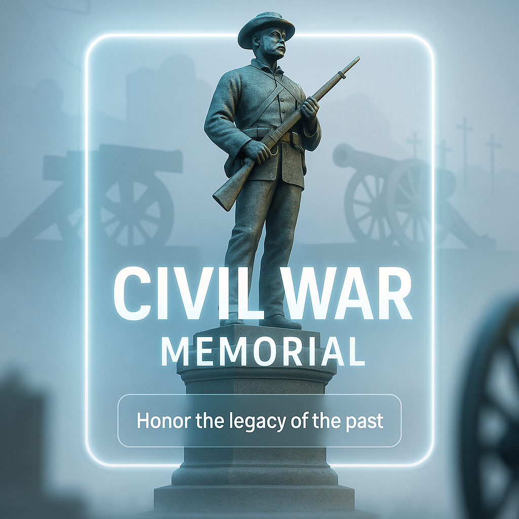 /Collection: /by davooda/Type: PNG/A solemn statue commemorating the Civil War, featuring a soldier holding a rifle. The design evokes themes of history and remembrance, suitable for educational and memorial contexts.