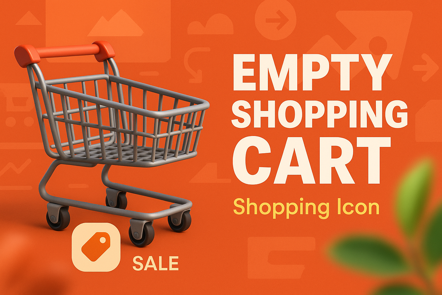 A vibrant 3D illustration of an empty shopping cart against an orange background, ideal for e-commerce platforms and promotional materials.
