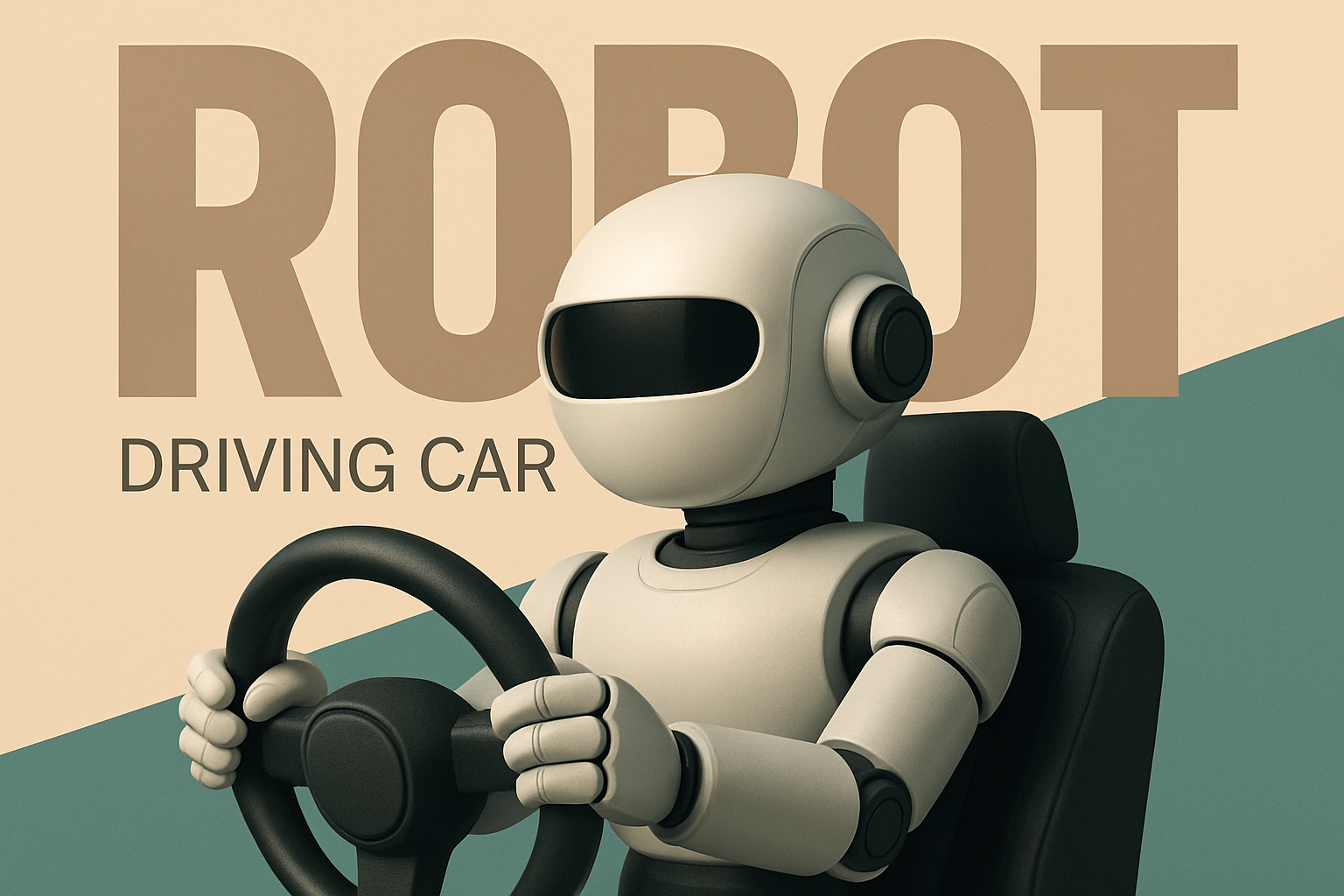 Stylish Robot Chauffeur Driving a Car in Minimalist Design