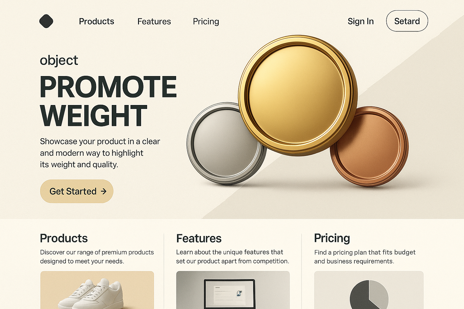Minimalist Landing Page Design with Metallic Elements