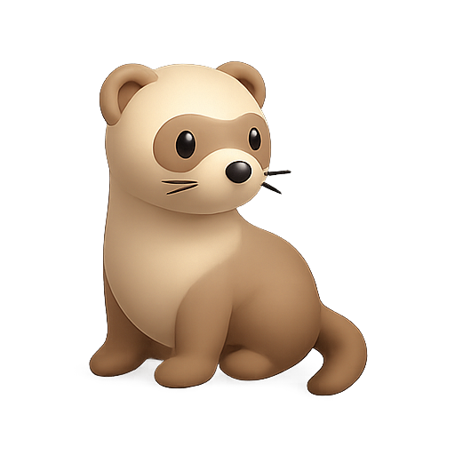 A playful and adorable cartoon-style illustration of a ferret, featuring soft colors and rounded shapes. Ideal for children's content, educational materials, or playful branding.