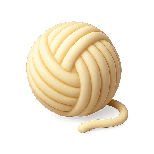A detailed 3D rendering of a soft yarn ball, showcasing smooth textures and a minimalist design. Ideal for crafting or knitting-related content.