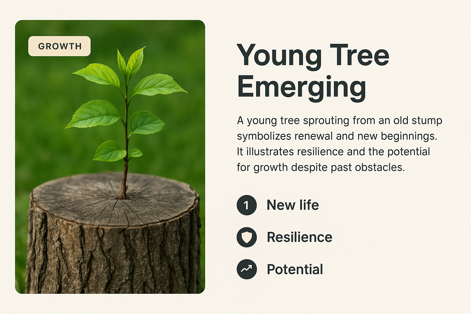Young Tree Growing from Old Stump Symbolizing Resilience