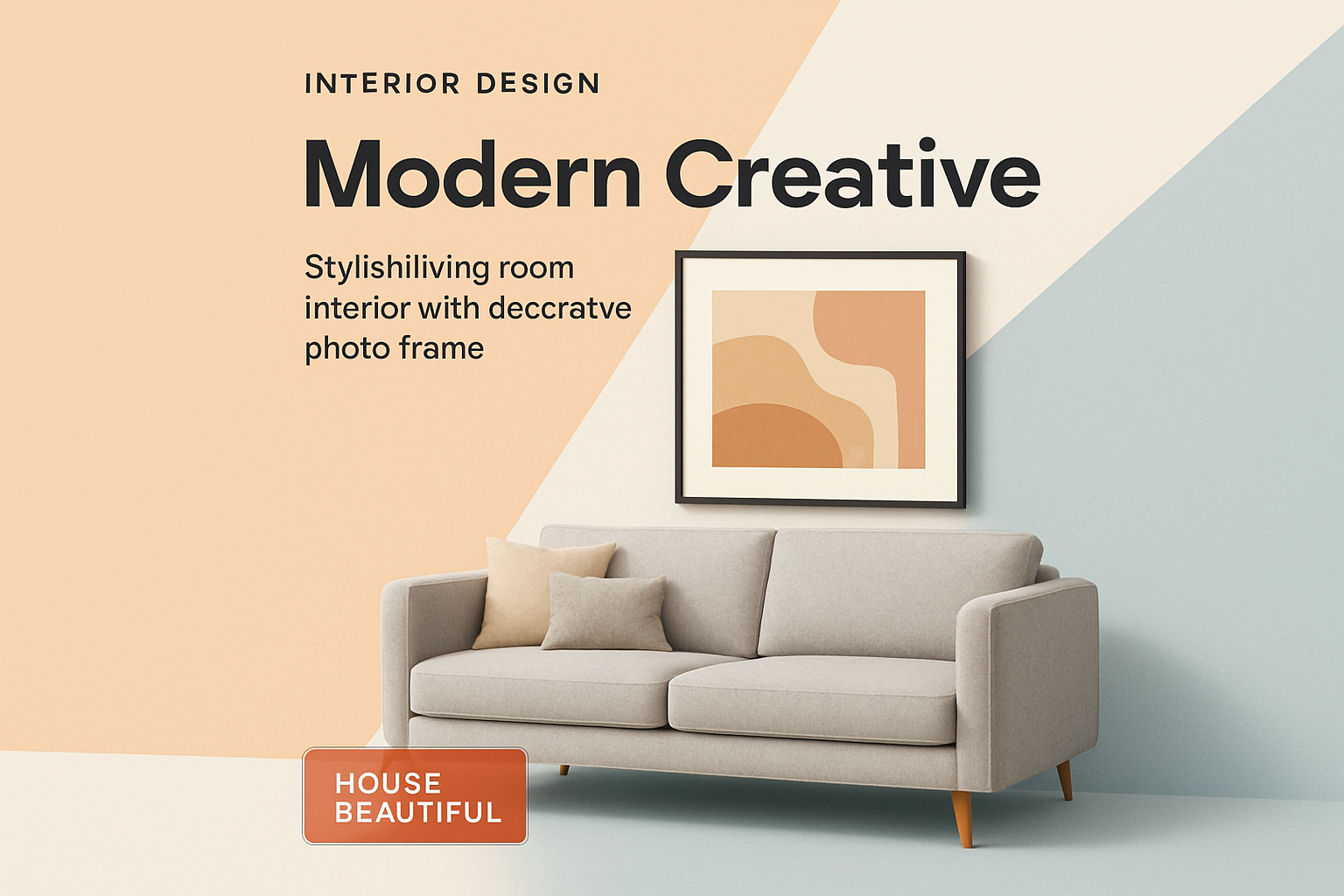 /Collection: /by davooda/Type: PNG/A contemporary living room featuring a stylish sofa and a decorative photo frame. The backdrop is creatively divided into light color fields, enhancing the modern aesthetic.